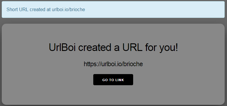 It's time to create a beautiful functional frontend for UrlBoi. I salvaged the default Phoenix templates and assets index.html.eex, app.html.eex, phoenix.css, and app.js, and I created a couple more templates form.html.eex and created.html.eex to render the pre and post short-url creation screens. It's pretty simple as I want the GUI to be used only for creating links, not all the features of the API.