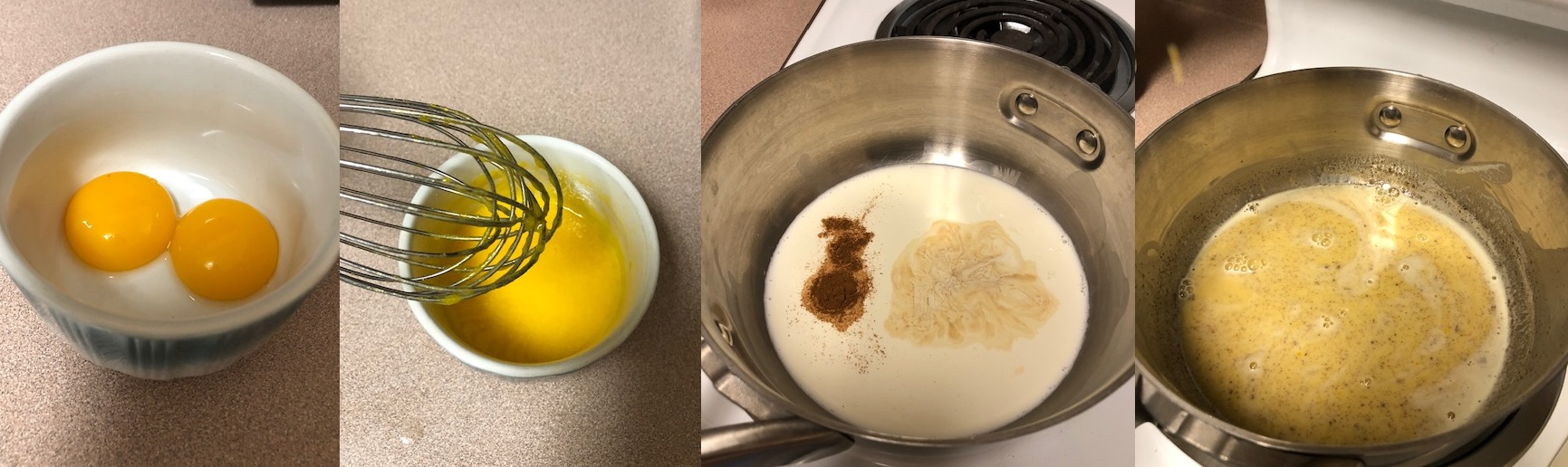 - Put milk, cream, vanilla, and cinnamon pot on medium heat