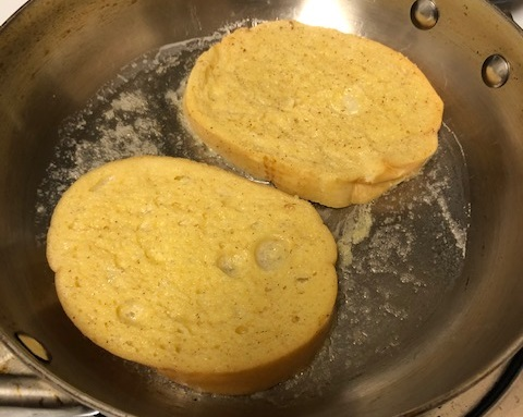 French toast is known by many names, and it's been around for well over a millennia. It's an ingenious way to utilize stale bread. In the modern day with such excess of food and preservatives, finding a use for stale bread usually isn't necessary, but French toast is good enough to make on demand with fresh ingredients. This recipe involves dipping bread in a crème anglaise, so perhaps it ought to be called English toast. Food for thought.