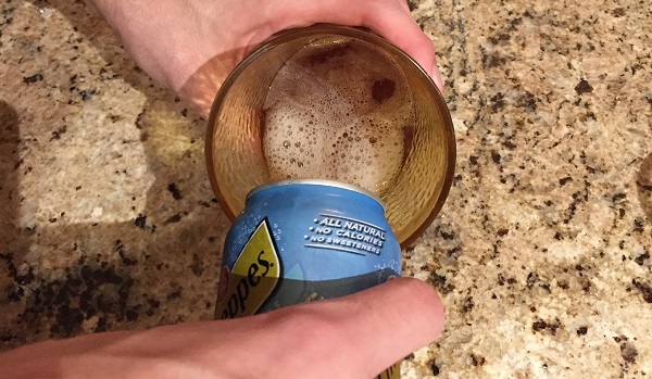 - Tilt your container at a 45 degree angle, and gently pour your cold seltzer into it as to avoid losing carbonation.