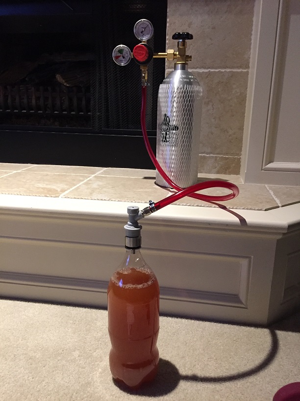 - If you haven't already, attach your CO2 hose to the keg or two-liter and adjust the pressure regulator to output around 40 PSI.